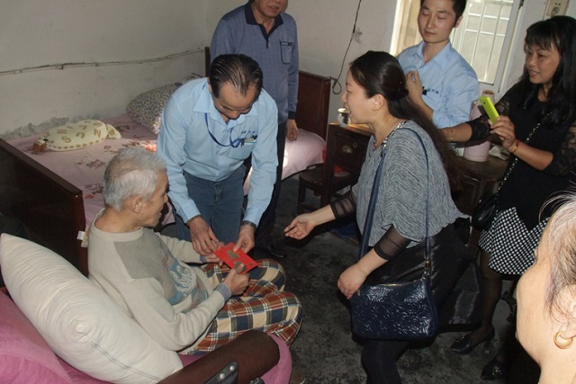 重陽節(jié)當天,鎮(zhèn)黨委朱書記、社區(qū)委員和上海大寶管理部簡侑仕經理、工程部林心旺顧問等一同前往當?shù)鼐蠢显海赐繂柫岁懡ㄓⅰ㈥惒竦?位孤寡老人。他們當中,年齡最大的近90歲高齡,最小的也有70多歲,因為無兒無女無所依靠,這些老人生活較為清苦,他們需要社會給予更多的關愛。