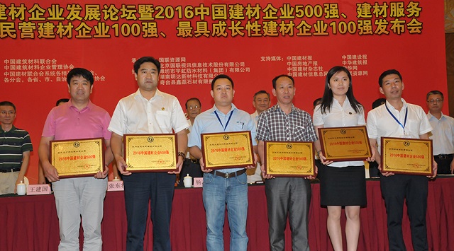 日前,2016年中國企業發展論壇暨中國建材500強、建材服務企業100強、民營建材企業100強、最具成長性建材企業100強發布會在北京隆重舉行。