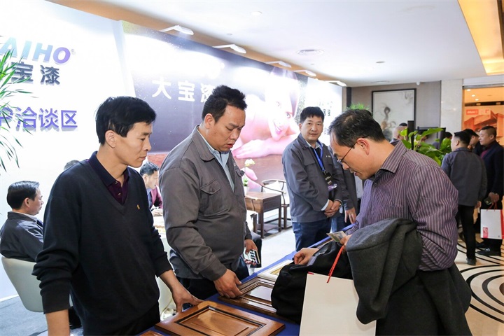 為促進(jìn)家具企業(yè)升級(jí),讓更多家具企業(yè)直觀的感受到大寶漆工藝效果,在現(xiàn)場(chǎng)大寶漆設(shè)立了展位,展示了大寶家具漆產(chǎn)品色板。環(huán)保轉(zhuǎn)型迫在眉睫,大寶漆涂裝黑科技樣板吸引著眾多家具企業(yè)前來咨詢洽談。