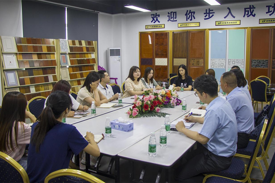 結(jié)合目前國家的環(huán)保政策及順德家具行業(yè)的具體情況,伍秘書長提出了一些很好的建議與方案,同時代表企業(yè)如何推動水性家具漆在家具產(chǎn)品上深度的應(yīng)用,與大寶漆的領(lǐng)導(dǎo)和專家交換了意見,并得到了滿意的答復(fù)。