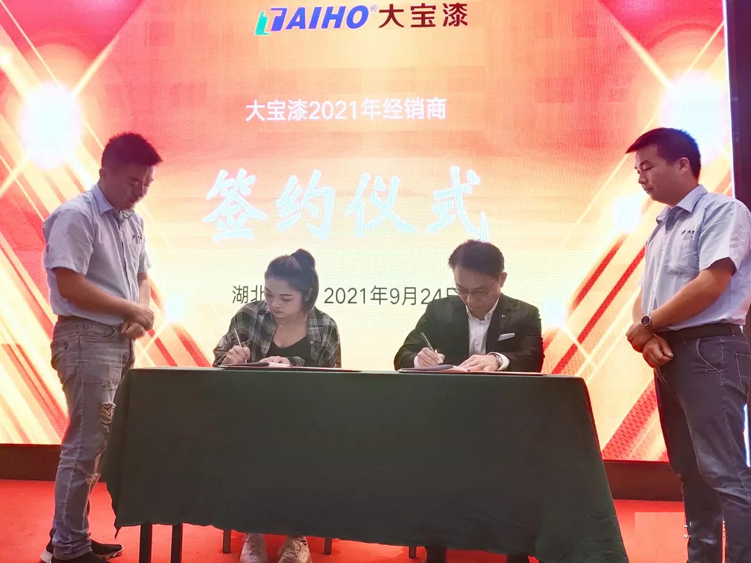 結(jié)合公司對湖北市場布局的宏觀策略,葉副總代表公司與湖北區(qū)的19位經(jīng)銷商舉行了正式的簽約儀式。本次簽約,意味著大寶漆在湖北市場將有新的突破和發(fā)展。