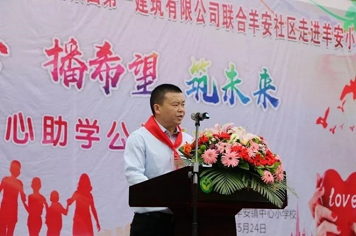 5月24日,成都大寶化工攜手中建一局第一建筑有限公司走進(jìn)羊安小學(xué),舉行了“獻(xiàn)愛心,播希望,筑未來”的公益活動。邛崍市教育局副局長孟許、成都大寶化工業(yè)務(wù)總監(jiān)鄭開國、中建一局集團(tuán)第一建筑有限公司項目經(jīng)理仇宏海、羊安鎮(zhèn)人大副主席李春寒、羊安社區(qū)支部書記茍毅超等出席了此次活動。
