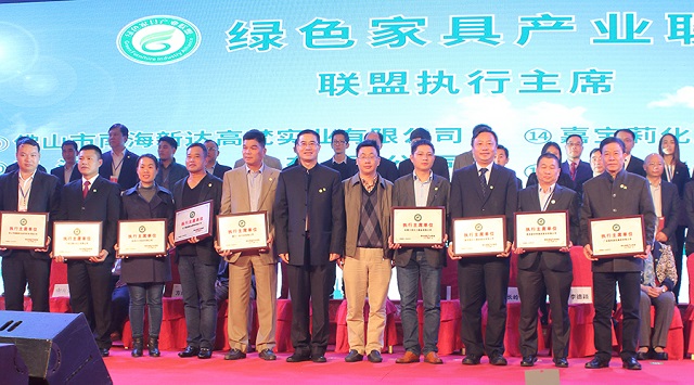 在授牌儀式上,廣東省家具協會會長王克代表聯盟領導小組在會上致辭。他表示,感謝廣東家具行業、涂料行業、林業產業的企業對聯盟的信任和寄予的期望。綠色家具產業聯盟本著對聯盟發展宗旨的負責態度,經過對申報企業的資格評價,最終在三個行業中選出了33家企業作為綠色家具產業聯盟的首批成員企業。今天,舉行隆重的授牌儀式,是向社會發起大力發展綠色家具消費的一個產業倡導,聯盟成員要共同著力打造家具綠色、環保、生態、可循環發展的產業鏈。