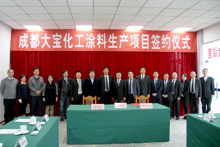 11月11日上午,成都大寶化工涂料生產(chǎn)項目落戶成都市邛崍羊安工業(yè)園區(qū)。中共成都邛崍市委書記曾洪揚、市長惠朝旭、市委常委何興軒等出席了接待儀式,隨后,大寶國際董事長陳賀生與邛崍市副市長周洪彬代表雙方簽約,當日,成都大寶化工制品有限公司宣告正式成立,標志著在業(yè)內(nèi)具有極高聲譽的大寶漆正式落戶邛崍。
