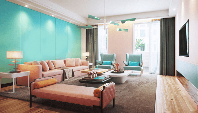 甜而不膩,給人舒緩淡雅、恬靜溫和的視覺感受,搭配粉嫩的馬卡龍色系可以消除煩惱、抵抗壓力。柔軟的沙發搭配上糖果般的色彩,讓人能忘卻一天的疲累讓身心更加放松。