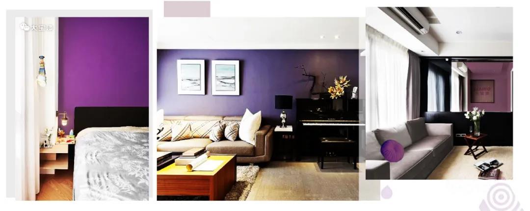 在空間中,大面積使用黑加侖紫其實不大好把控,需要把握好搭配色調和整體比例。黑加侖紫也可以與灰、木色等搭配,增強空間明亮感,提升家居的活力。